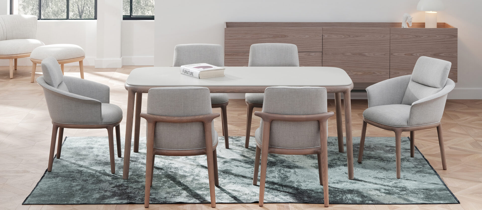 The Lapelle table range follows the style of the chairs range, by utilising clean rounded legs which promotes the designs natural beauty. Curves feature prominently throughout the range, being used thoroughly across each different table top size, as well as on the legs.